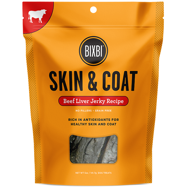 Talk about a great hair day! BIXBI Skin & Coat Jerky Treats are made with tasty, human-grade proteins—like free-range chicken, grass-fed beef or wild-caught salmon—and loaded with naturally enriching whole foods that help support shiny, full-bodied coats and healthy skin. Packed with antioxidants, vitamins and minerals, these Jerky Treats provide protein-rich nutrition that will have your dog looking great and feeling even better.