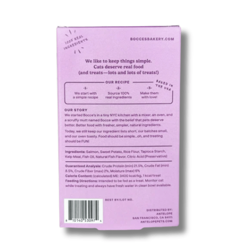 Ingredients: Salmon, Sweet Potato, Rice Flour, Tapioca Starch, Kelp Meal, Fish Oil, Natural Fish Flavor, Citric Acid (Preservative)