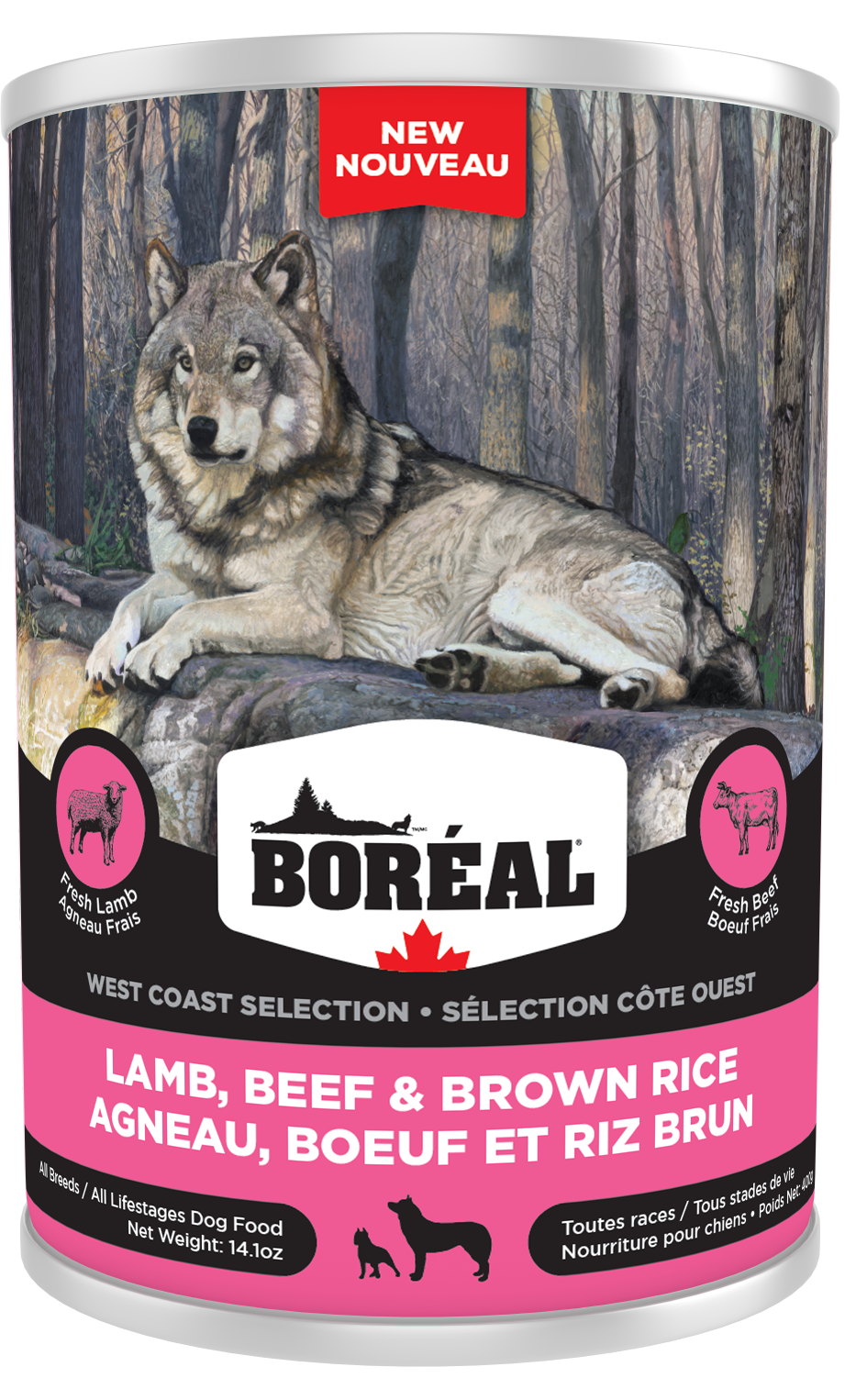 The Boreal West Coast Selection recipes for dogs feature 87% meat and are made with very little carbohydrates and starches to reduce unwanted weight gain! Boreal Pate's feature a high meat content and digestible brown rice.