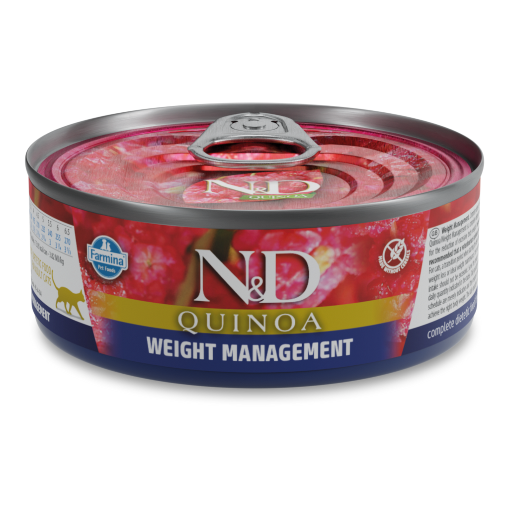 N&D Quinoa Weight Management Recipe is formulated to meet the nutritional levels established by the AAFCO Cat Food Nutrient Profiles for maintenance.