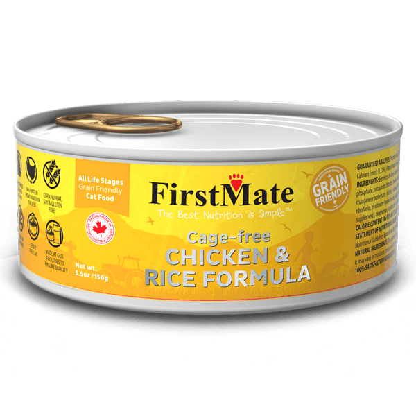 FirstMate’s Grain Friendly™ Cage-free Chicken & Rice formula proudly uses cage-free Chicken from British Columbia, Canada, with quality rice. Our Chicken is boneless, food-grade and without added hormones. This Grain Friendly™ formula is ideal for everyday feeding and can be fed along side one of our dry options or on its own as a complete and balanced formula.