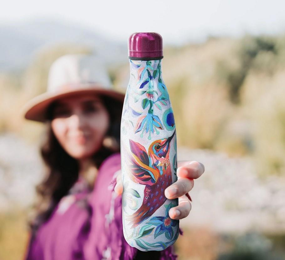 A lovely hummingbird floats among flowers in this colorful design. Double-walled stainless steel, BPA-free with spill-proof vacuum seal keeping your beverage hot or cold for at least 12 hours and up to 24 hours.17oz/500ml, Handwash only