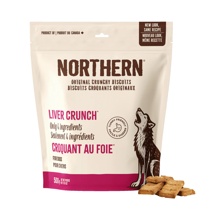 Northern Biscuit's very first recipe and a time-tested simple classic, these instant crowd-pleasers are baked with ONLY 4 ingredients. Featuring fresh, human-grade beef liver from Ontario and Quebec, this best seller will leave your dog wanting more. Baked in small batches with limited ingredients and the specially crafted Northern CRUNCH, Northern biscuits are naturally preserved and packaged in a 100% compostable bag. At only 18 calories per 5g biscuit, these biscuits are perfect for treating, rewarding and bonding with your dog. Baked in Canada.