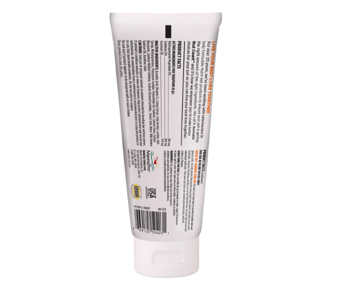 Nutri-Vet Hairball Salmon Flavoured Cat Paw-Gel is an easy way to promote healthy skin and glossy coat. As cats groom themselves they ingest hair which can build up and cause hairballs. Regular brushing and the use of the Hairball Paw-Gel may help prevent and eliminate hairballs. This tasty salmon flavoured paw-gel is petroleum-free and formulated with no artificial colours or flavours.