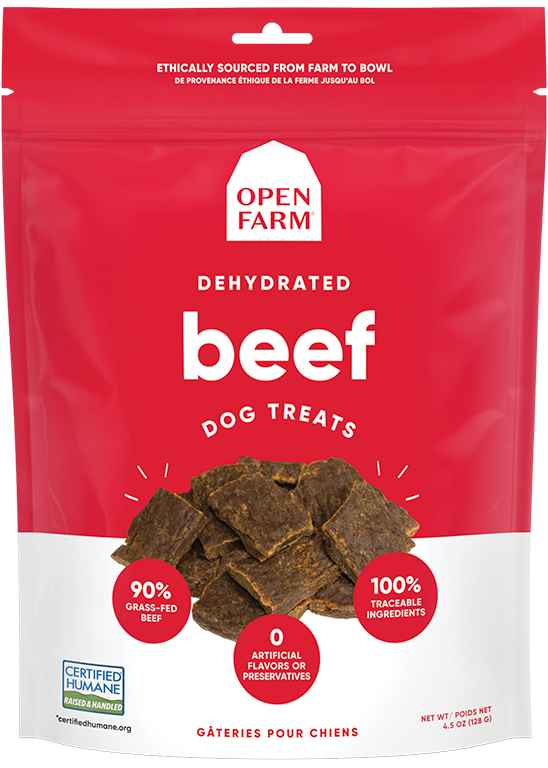 Your pup's gonna do backflips for Open Farm Dog Dehydrated Beef Treats! They're made with humanely raised beef that's been cooked and dehydrated at low temps to make them extra tasty. Plus, they contain no glycerine, grain, gluten antibiotics or growth hormones — a win-win in every pawful!