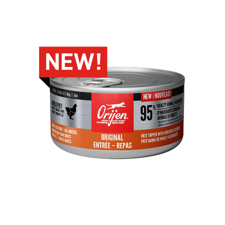 Orijen Entrees for Cats are made with rich, raw ingredients to nourish your cat and feature succulent pate topped with flavourful shreds. With 95% quality animal ingredients in each recipe it'll be a burst of flavour they can't refuse!