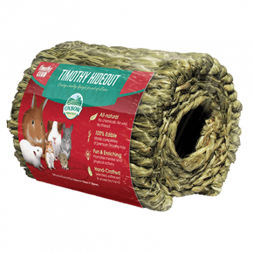 Small animals of all sizes can enjoy this hideout! 100% hand-woven with premium hay, smaller pets like hamsters and mice can enjoy this as a hideout where they can burrow, nest and nibble. Larger pets like guinea pigs and rabbits can enjoy this toy as a hay manger by stuffing fresh hay in the side! Great for owners with multiple pets.