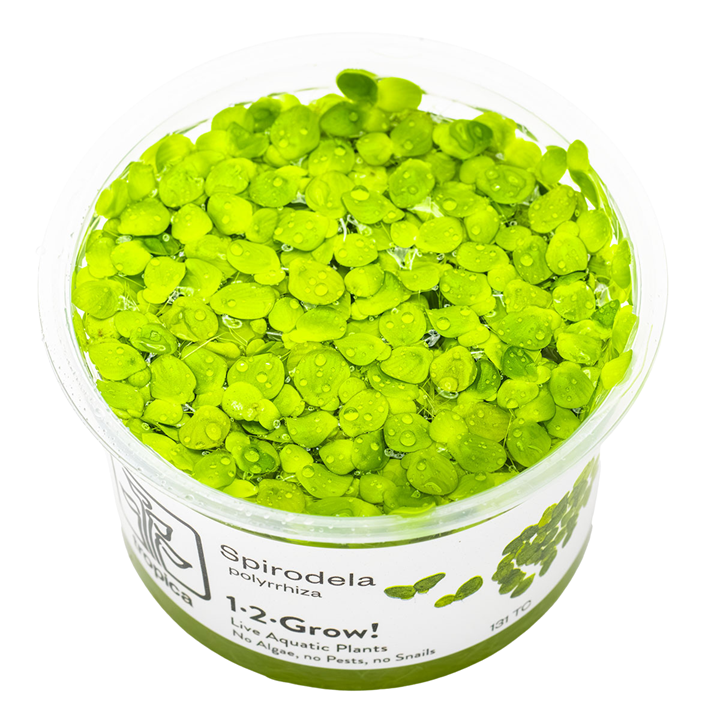 Spirodela polyrrhiza, commonly known as Greater Duckweed, is a versatile floating plant that adds a natural, dynamic element to aquariums. Its small, round, green fronds float freely on the water's surface, creating a serene, pond-like appearance. This plant is ideal for providing shade and shelter for fish, reducing light penetration, and helping to control algae growth.