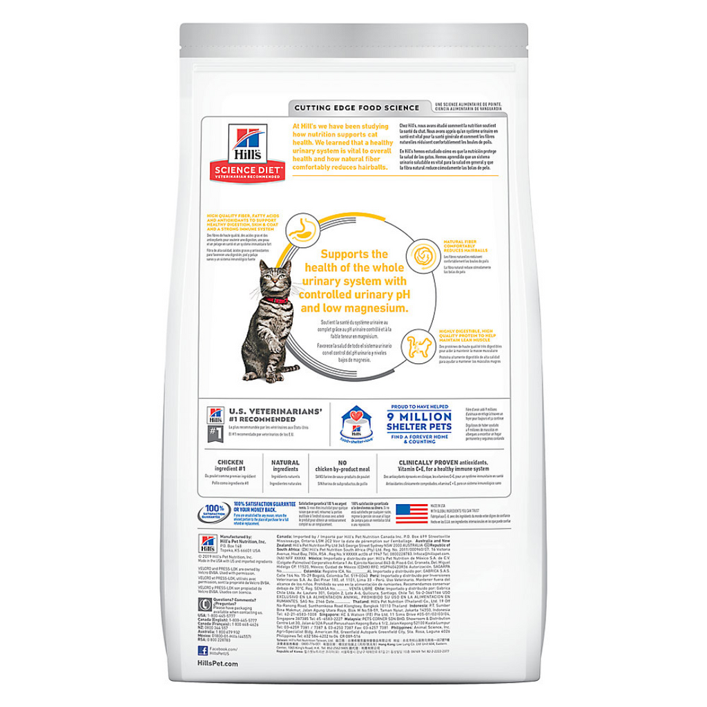No one enjoys dealing with hairballs, and neither does your adult cat. Hill's Science Diet Urinary Hairball Control Adult dry cat food is specially designed to support the entire urinary system—from kidneys to bladder—while helping to minimize hairball formation. Crafted with natural ingredients, this food features easily digestible fibers to help reduce hairball issues comfortably. It includes real chicken for high-quality protein to support muscle maintenance, and provides omega-3 and omega-6 fatty acids to nourish the skin and coat. Discover the new look of Science Diet with even more benefits!