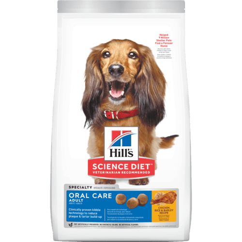 - Hill's® Science Diet® Adult Oral Care dry dog food provides precisely balanced nutrition for dental and complete health.