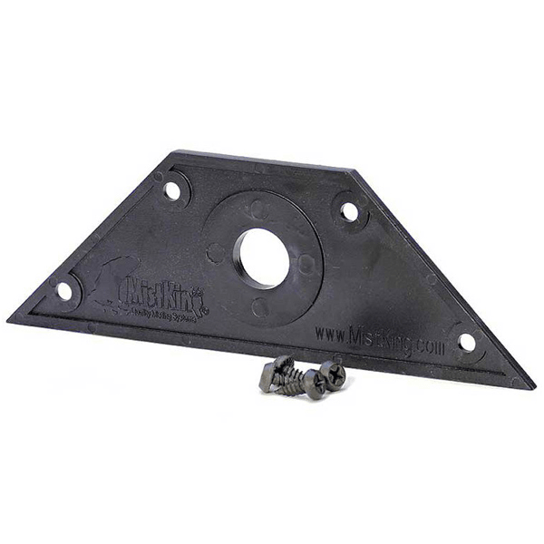 Screen wedge made out of black plastic. Precision moulded to perfect 90 degrees, ideal for mounting adjustable nozzles in screen vivarium tops (ie. chameleon enclosures). 4 counter sunk mounting holes drilled on the sides and one hole drilled in the middle for the misting assembly. Available for value nozzles only.
