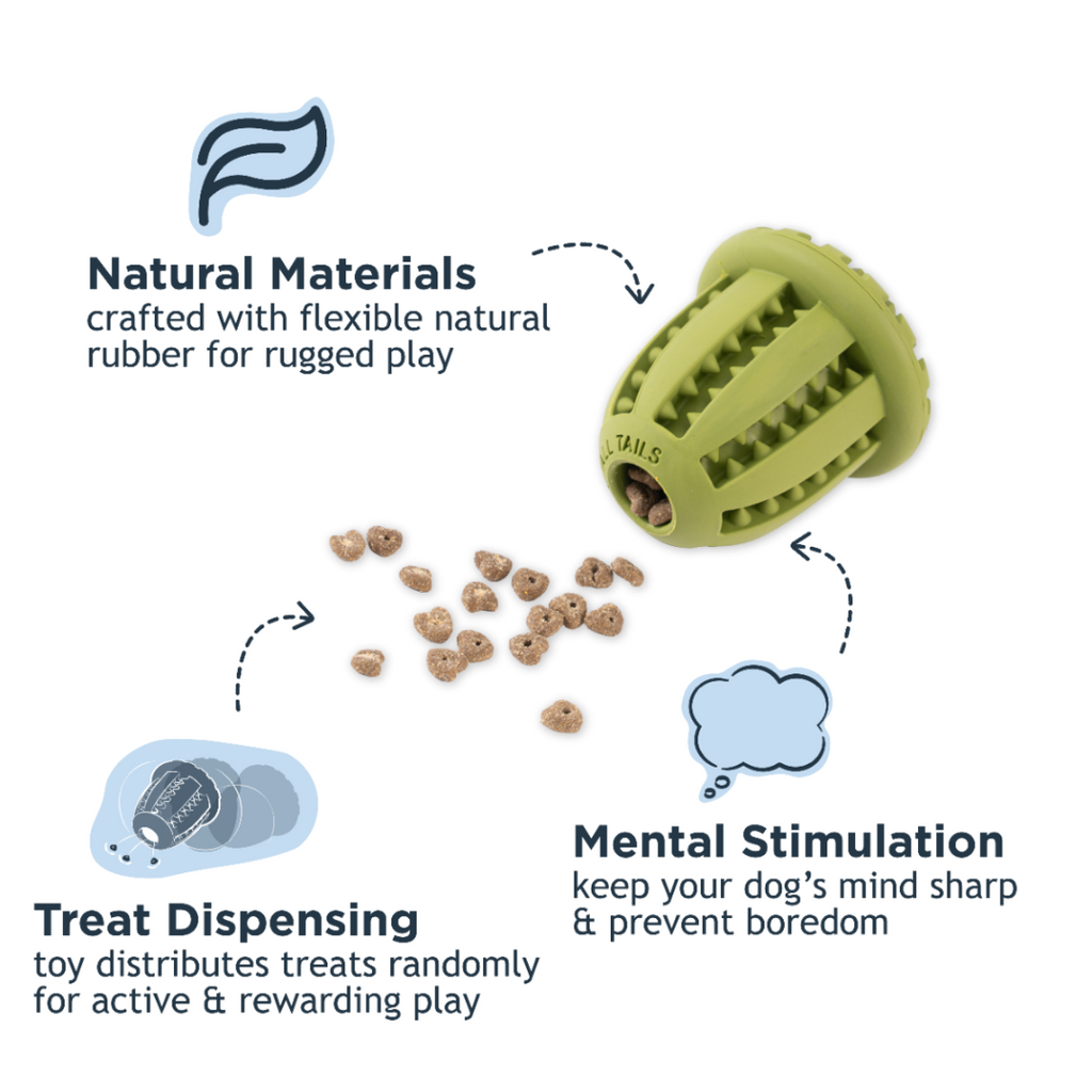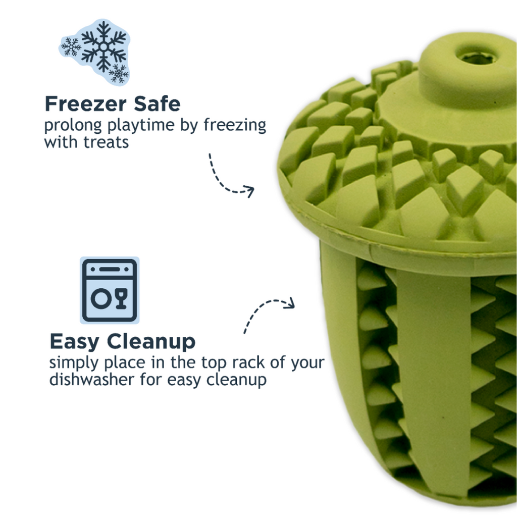 Made of flexible and rugged natural rubber, the Natural Rubber Acorn Toy is fashioned to strengthen the bond between you and your best friend. Its natural shape offers rambunctious bounce for those games of fetch in the backyard or the park, paving the way for more realistic and rewarding play. Meanwhile, its featured grooves massage gums and help maintain doggie dental hygiene as they nibble along. Add even more fun with spread-on treats for a yummy, stimulating time!