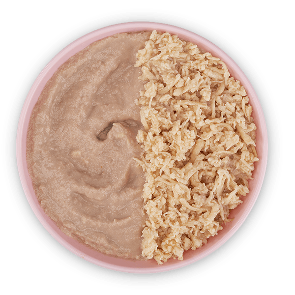 Chicken, chicken broth, sunflower seed oil, chicken liver, salmon, dicalcium phosphate, calcium lactate, potassium chloride, inulin, taurine, salmon oil, choline chloride, salt, magnesium sulfate, ferrous sulfate, thiamine mononitrate (vitamin B1), vitamin E supplement, sodium selenite, niacin (vitamin B3), zinc oxide, vitamin A supplement, biotin, vitamin B12 supplement, copper amino acid chelate, manganous oxide, calcium pantothenate, riboflavin supplement (vitamin B2), pyridoxine hydrochloride (vitamin B6), folic acid, potassium iodide, vitamin D3 supplement.