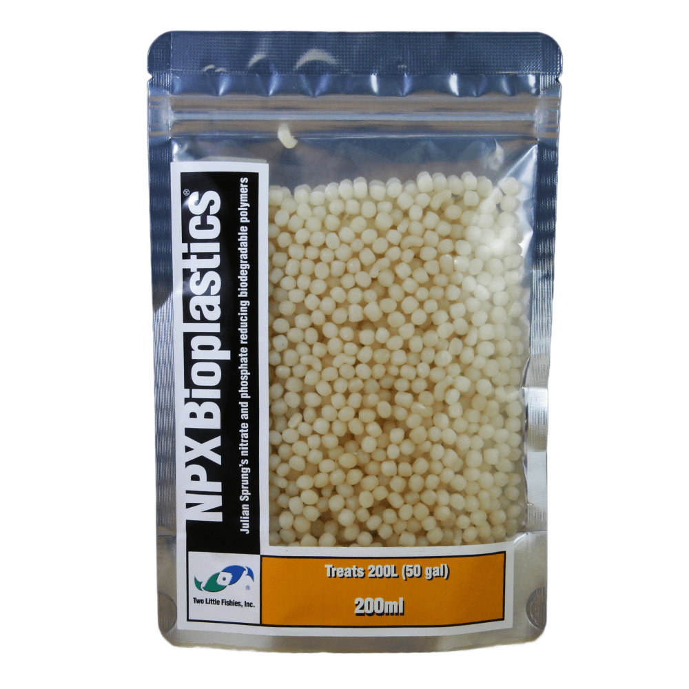 These biodegradable polymers provide a time-released source of food for bacteria that assimilate nitrate and phosphate. As bacteria develop, excess growth sloughs off due to water movement from the filter, allowing these bacteria to be removed with a protein skimmer or used as planktonic food for corals, clams, and sponges. Best installed in fluidized filters, Bioplastics can also be placed in a regular filter media bag inside your filter to decrease nitrate and phosphate levels.