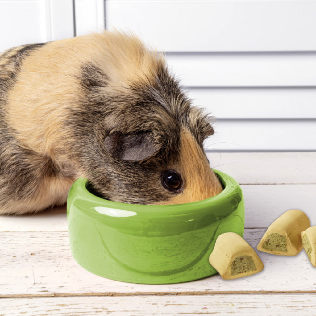 Vitakraft Raviolos are delicious, oven baked treats ideal for Rabbits, Guinea Pigs, Hamsters, and other small animals. The crunchy outer layer surrounds a treat center made from real carrots, spinach, alfalfa, and parsley. These scrumptious treats are both a healthy reward and satisfying snack. The crunchy texture helps to satisfy natural gnawing instincts and support your pet’s dental health. Use to supplement daily food and add some fun variety to your pet’s diet!