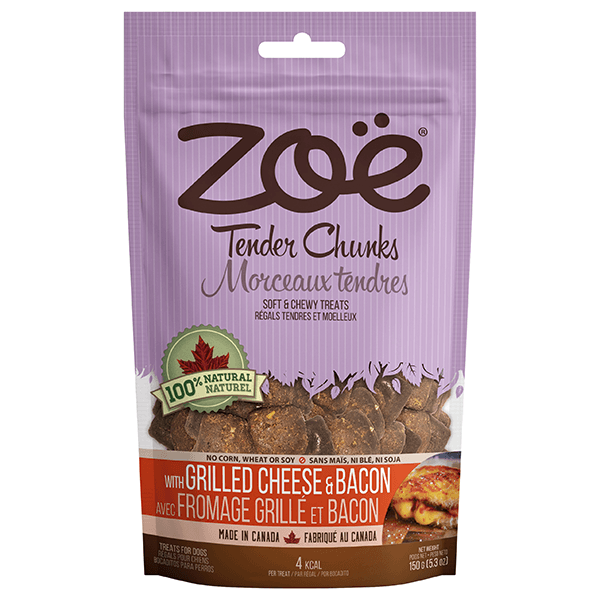 Zoe Tender Chunks are highly palatable soft & chewy treats, ideal for rewarding your dog on a daily basis. Zo Tender Chunks are Canadian-made, and are 100% natural.