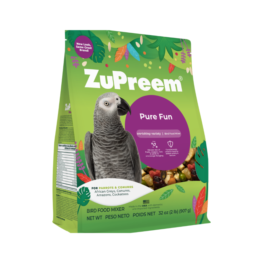 Pure Fun™ Bird Food for parrots & conures is a premium blend of fruit, FruitBlend® Flavor Smart Pellets,™ vegetables and nuts to help excite and enrich your pet bird. This blend includes a delicious mix of right-sized pieces for your bird which helps minimize wasted food.